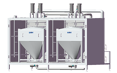 優(yōu)康恩自動(dòng)化料系統(tǒng)用于對(duì)粉料和其它配料進(jìn)行乳化和水化的混料系統(tǒng)設(shè)備。其中真空混料機(jī)可在密閉真空容器下進(jìn)行高速剪切乳化混合綜合產(chǎn)品、各種粉末和液體等,每小時(shí)化粉量可達(dá)到3T-5T。優(yōu)康恩自動(dòng)化料系統(tǒng)可利用真空作用將配料輸送到化料設(shè)備中,省去了操作工承擔(dān)這項(xiàng)繁重工作的需要。
